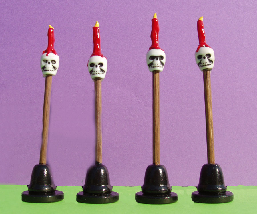 Each torch is approx. 3" h, base is 3/4" round. Comes in a boxed set of four torches. Can not be ordered individually.